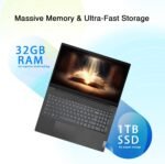 Generous Storage & Memory: Features 32GB DDR4 RAM and a 1TB SSD for fast data access and ample storage space, perfect for storing large files and applications.
