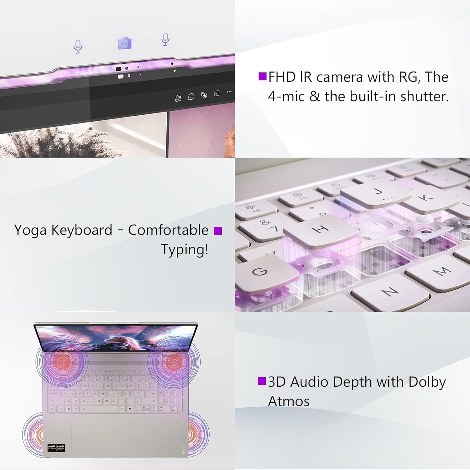 Look sharp and sound crystal clear with the FHD IR camera with RGB, capturing crisp visuals at 30fps.The 4-mic 3D array picks up your voice while reducing background noise for pro-level clarity. For privacy, just slide the built-in shutter.