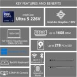 【Graphics & Display】: Intel Arc 130V GPU, 14″ WUXGA OLED Touch (Glossy, Anti-fingerprint, 100% DCI-P3, 600nits HDR)
