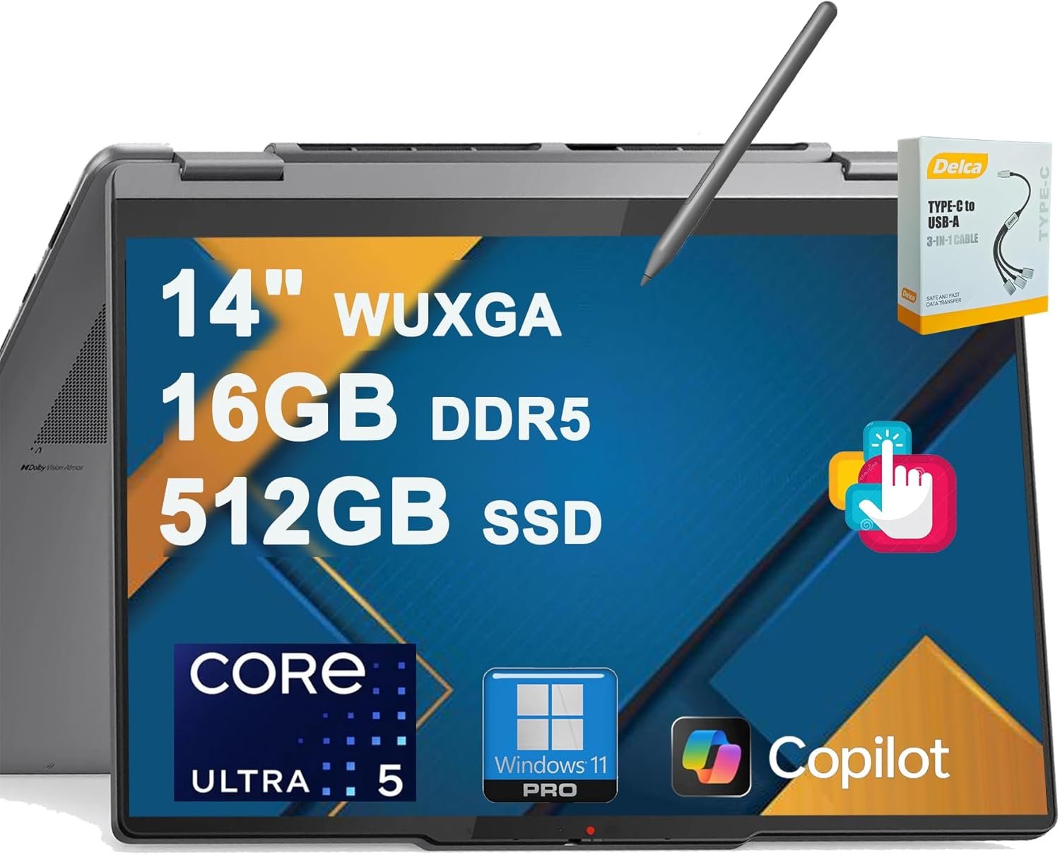 【OS】: Windows 11 Professional, Backlit KBD, Fingerprint Reader, Wi-Fi 7, 5MP IR Privacy Camera, Pen, Auth 3-in-1 USB Cable