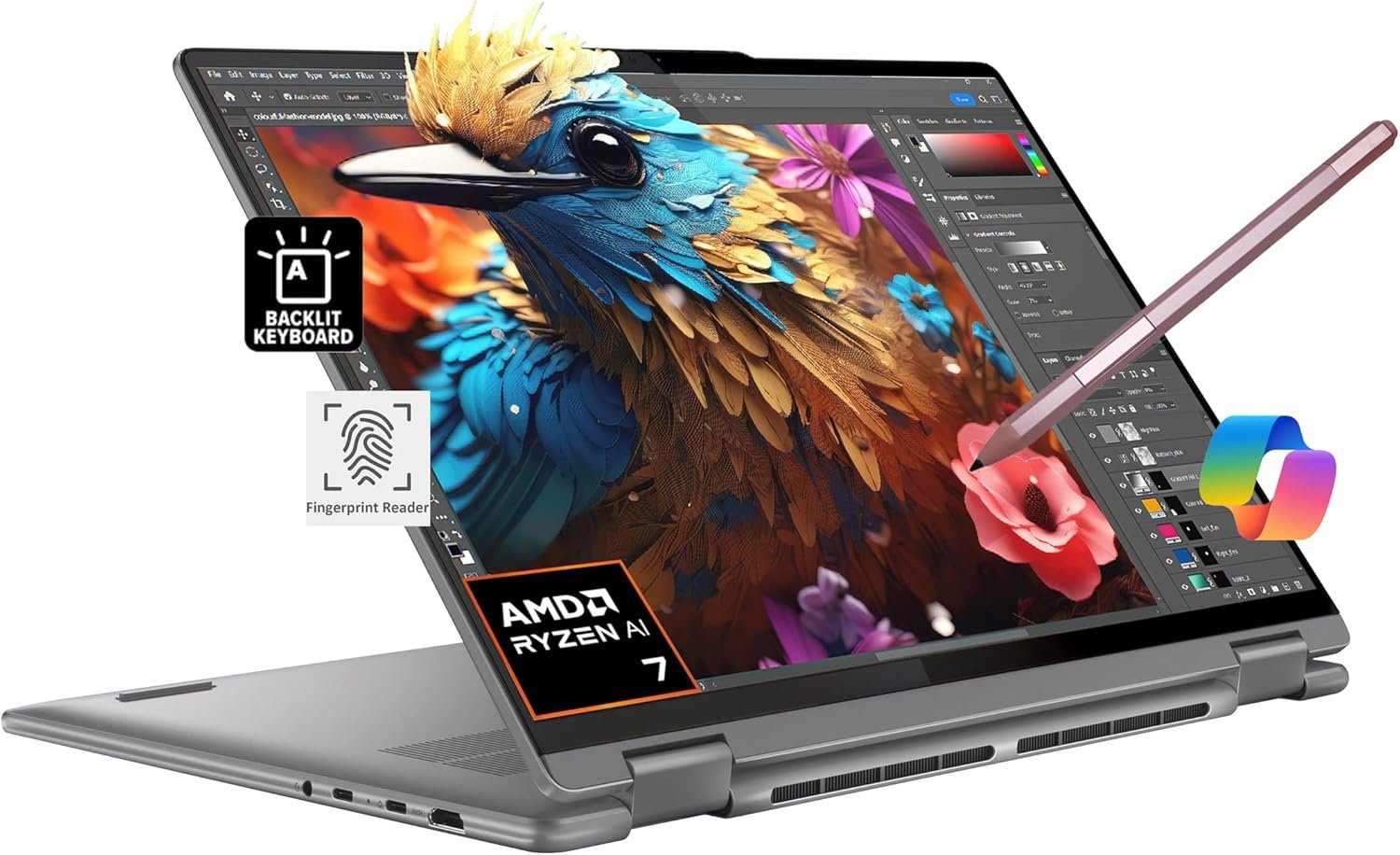 Newest Slim Designed Yoga 7, The x360 degree hinge allows ‘Laptop’ mode for everyday computing, ‘Yoga’ mode for sharing things, ‘Flip’ mode for binge-watching, or ‘Tablet’ mode for more intuitive interaction; Long battery life, 71WHr Battery Last Up to 19.5 Hours