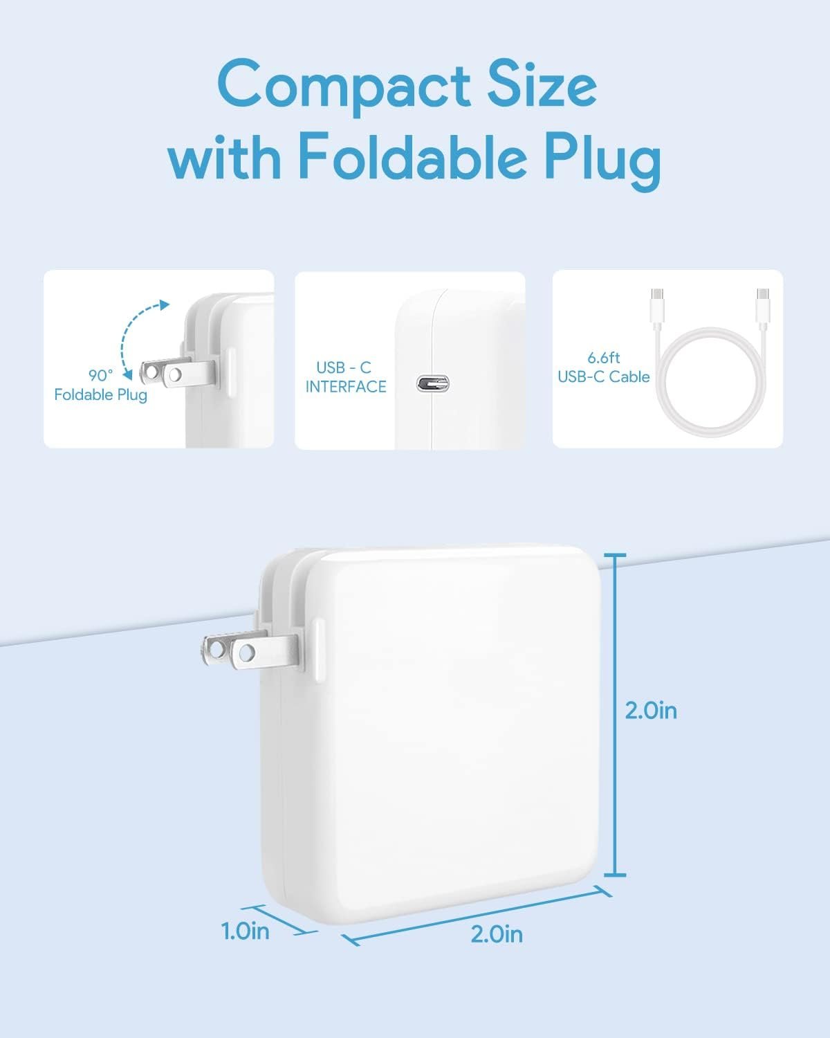 Compatible Models: MacBook Pro 13/14 Inch (2016-2025), 12 Inch 2015 (A1706,A1708,A1707,A1534), Macbook Air 13 inch (2018-2025). You can use this adapter instead of 67W, 65W, 61W, 45W, 30W, 20W adapter for lower wattage different MacBook/MacBook Pro model