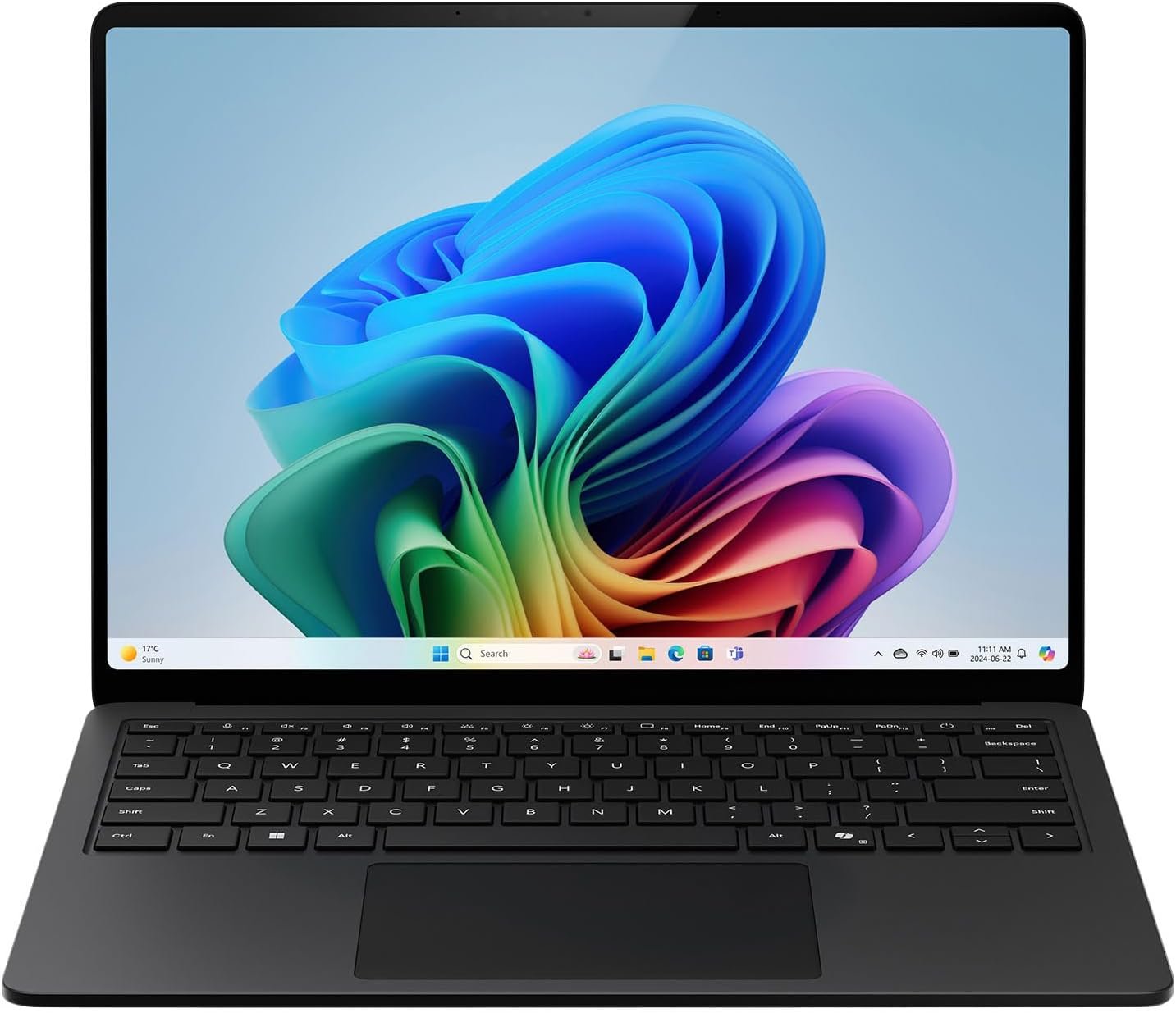 Exceptionally powerful, ultrathin laptop — The new Surface Laptop is not just faster—it’s smarter. Get the most out of your day with accelerated performance that unlocks a new AI era to enable Copilot experiences that transform the way you work, enhancing productivity and creativity. Experience visuals like never before on its stunning and modern Razor-thin touchscreen display. manufacturer renewed microsoft surface laptop-7 retail snapdragon x-elite/gpu qualcomm hexagon/npu 32gb/lpddr5x ram 1.0tb/removable-ssd wi-fi-7+bt webcam qualcomm adreno/gpu 13.8in pixelsense/touch w11h 2.96lbs 1yr black