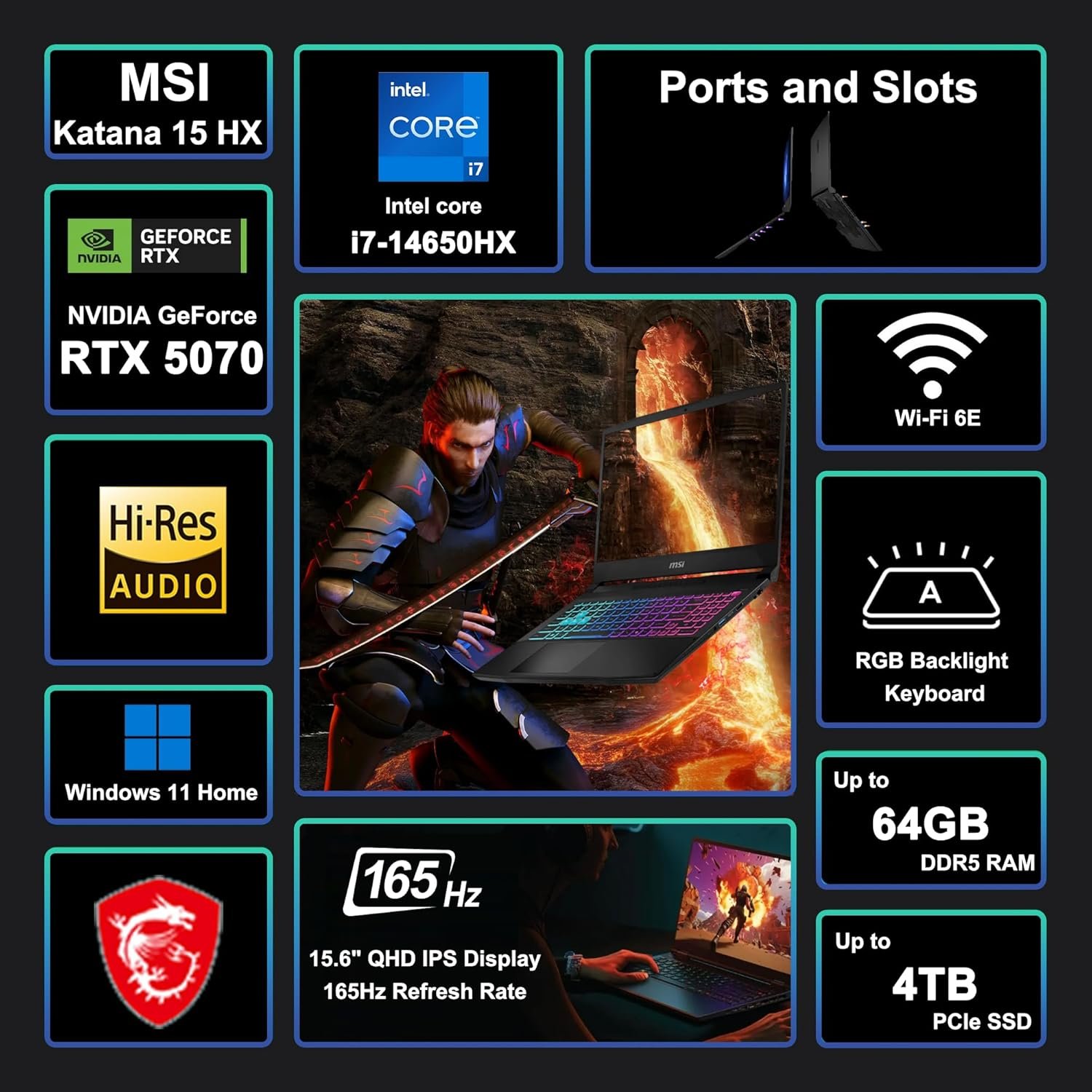 msi Katana 15 HX Gaming Laptop 15.6″ QHD IPS 165Hz (100% DCI-P3) Intel 16-core i…