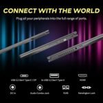 【Win 11 Home】【Dimensions】14.13x 10x 0.85 inches, 4.1lbs.【Wi-Fi 6】Free from clutter and interference from your home’s other wireless devices.【Ports】3x USB3.2 Gen2 Type-A, 1x USB3.2 Gen2 Type-C, 1x HDMI, 1x Mic-in, 1x Headphone-out, 1x LAN RJ-45, 1x DC-IN, 1x Kensington Lock. 2x 2W Speaker. Bluetooth 5.2. HD Camera. 【Bonus Docking Station Set】1x 7-in-1 Docking Station with 256GB Storage, 1x 32GB MicroSD Card with Adapter, 1x Type-C Data Cable, 1x 3-in-1 Charging Cable, 1x Suede Cleaning Cloth.