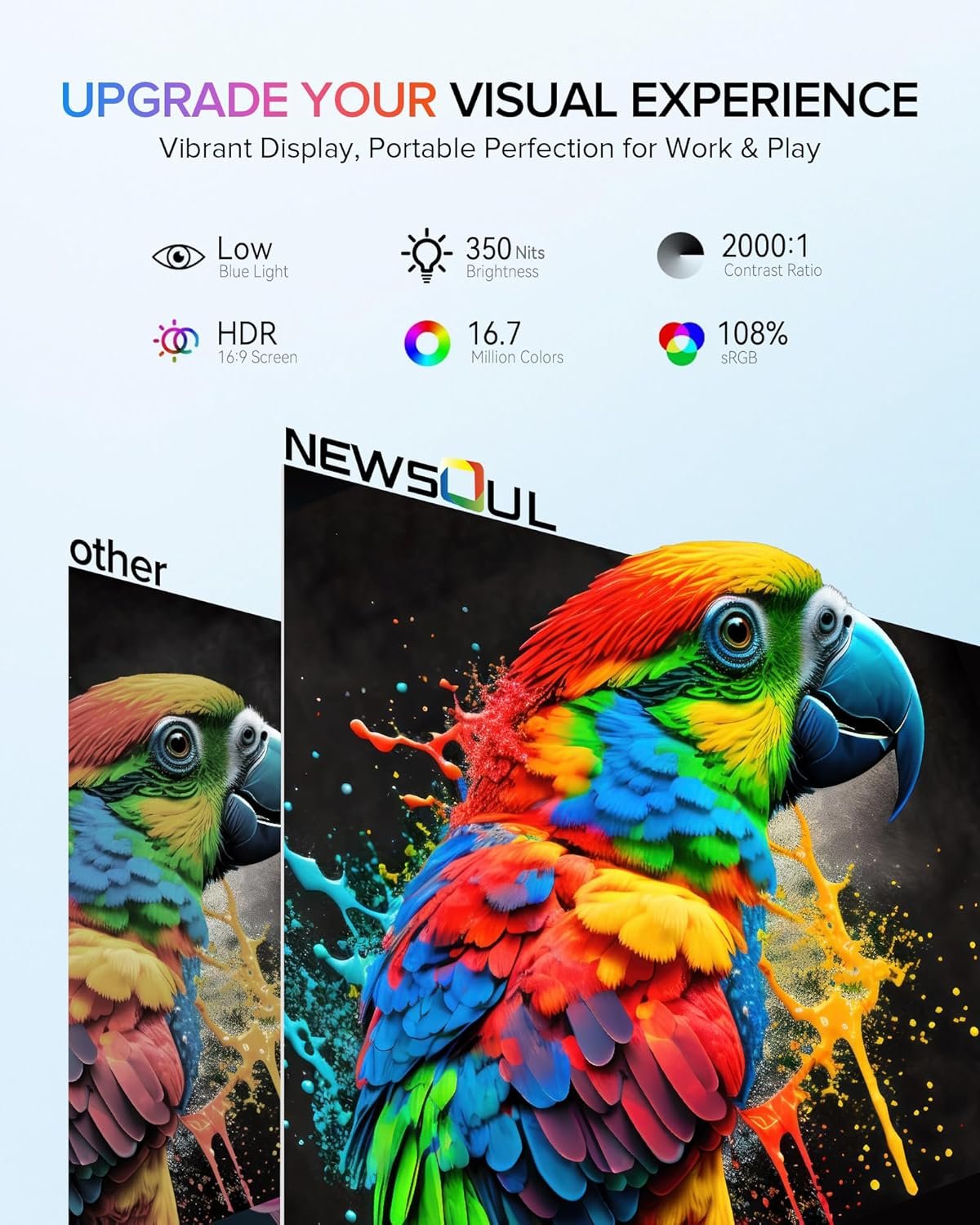 Newsoul portable monitor features with lightweight, slim, and ready to boost your efficiency wherever business you takes, double your workspace.