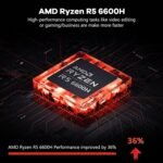 【AMD Ryzen 5 6600H & 660M GPU】Six cores, twelve threads, up to 4.5 GHz— the Ryzen 5 6600H and 6-core 660M GPU (6 nm, 1 900 MHz) deliver solid power for multitasking, light gaming, and pro apps without breaking a sweat.