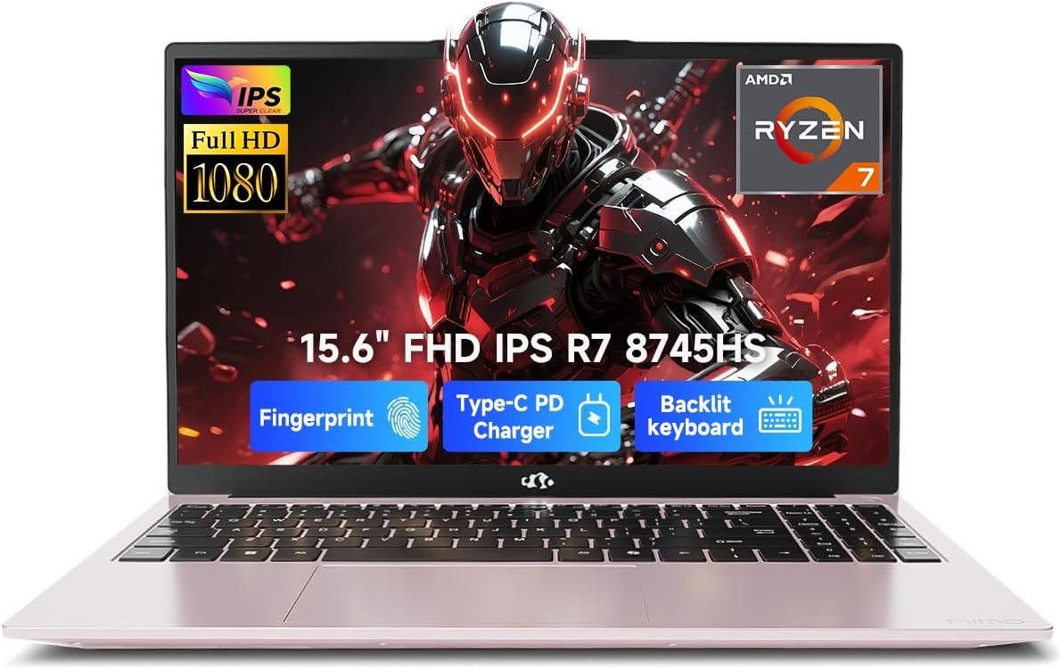 NIMO 15.6″ IPS FHD-Gaming-Laptop, AMD Ryzen 7 8745HS 16GB DDR5 RAM 512GB SSD (8C…
