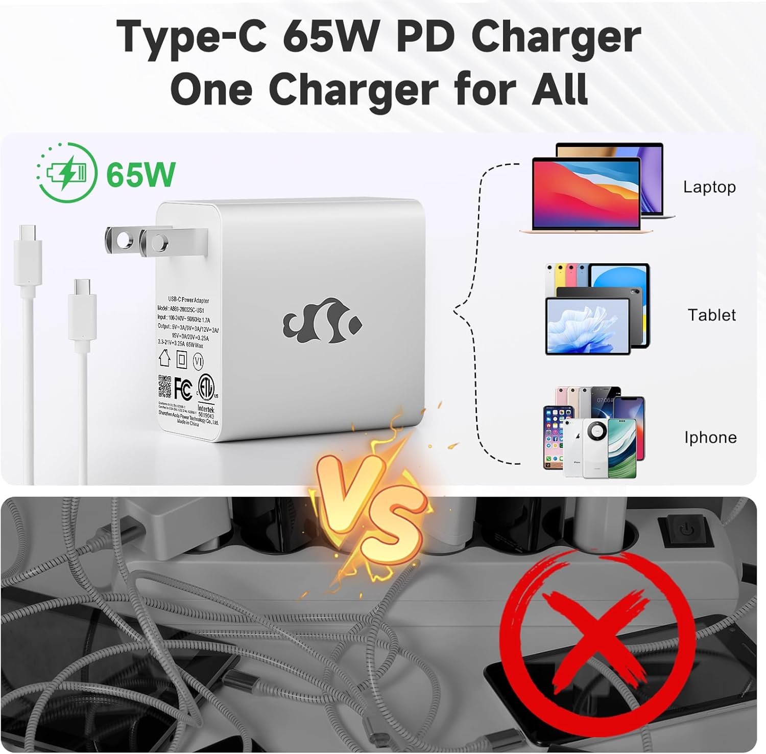 Wide Ecosystem & Compatibility: 65W USB-C PD chargers are widely available and standard across many devices, improving the convenience of accessory and charger interchangeability.