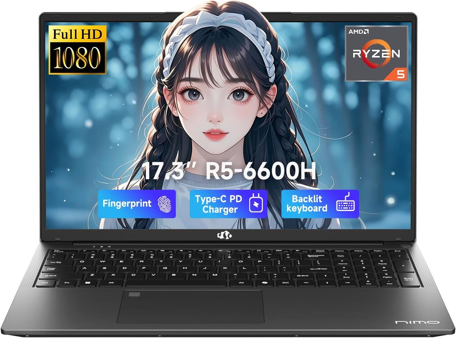 NIMO 17.3″ IPS FHD-Gaming-Laptop, AMD Ryzen 5 6600H 16GB DDR5 RAM 512GB SSD (Bea…