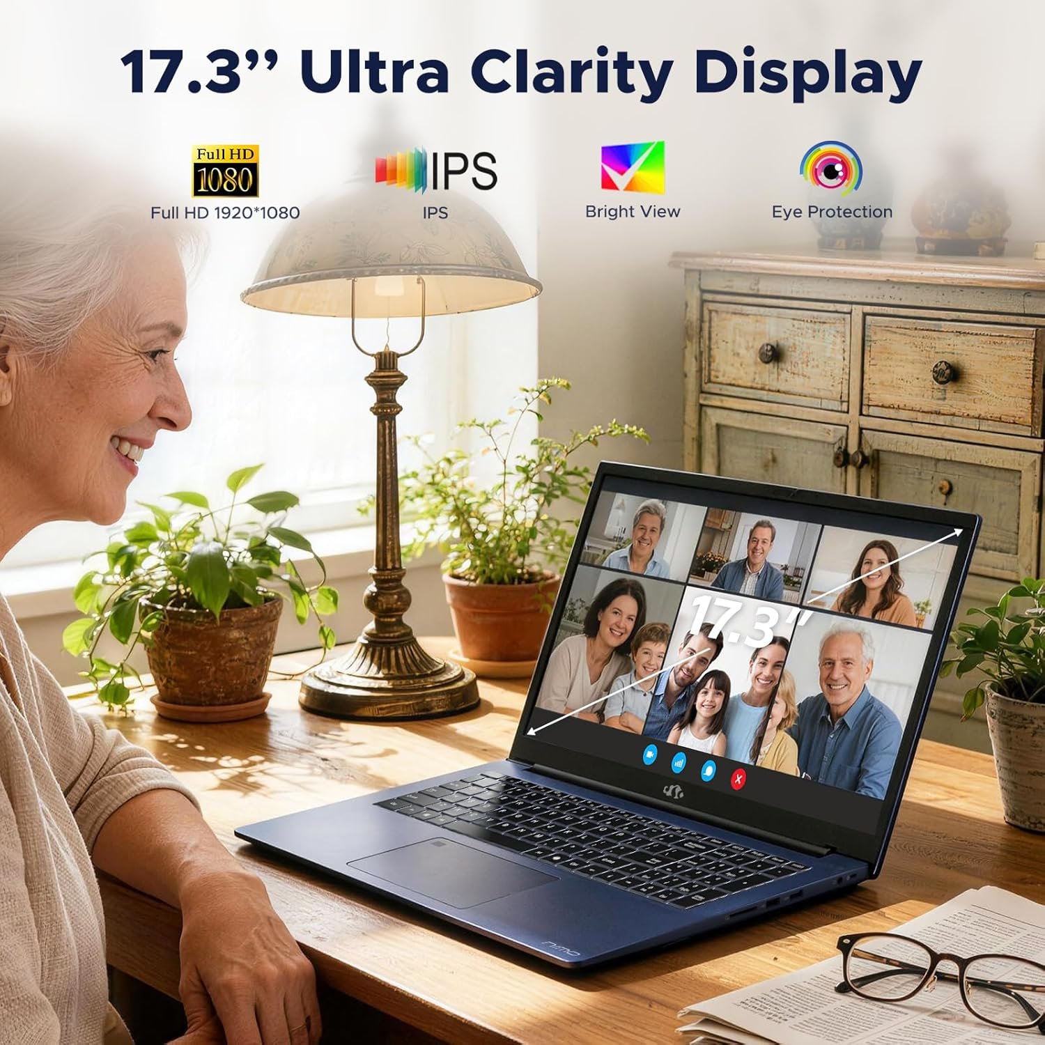 【Massive 17.3″ FHD Display: See Everything at Once】Maximize your workspace with the expansive 17.3-inch FHD IPS anti-glare display. Boasting a stunning 85% screen-to-body ratio and ultra-thin bezels, this NIMO laptop delivers an immersive, edge-to-edge viewing experience. Designed for data-driven professionals, creative editors, and office multitaskers, the 1080P Full HD clarity brings every detail to life with vibrant accuracy. Whether you are analyzing complex spreadsheets, drafting architectural plans, or enjoying 1080P cinematic streaming, the anti-glare technology ensures a comfortable, reflection-free view even in bright environments.