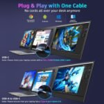 [One-Cable Laptop Screen Extender] – The QQH Double Screen for Laptops offers a simple plug-and-play experience with a single cable connection after installing the driver. Effortlessly connect your device using just one USB-C or USB-A cable (provided your device’s port supports full functionality). This sleek design reduces cable clutter, ensuring a clean and efficient workspace.( Driver Needed)