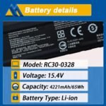 Model: RC30-0328Voltage: 15.4VCapacity: 65Wh/ 4221mAhBattery Type: Rechargeable Lithium-ion BatteryContion: 100% New from Manufacturer, Grade A Cell