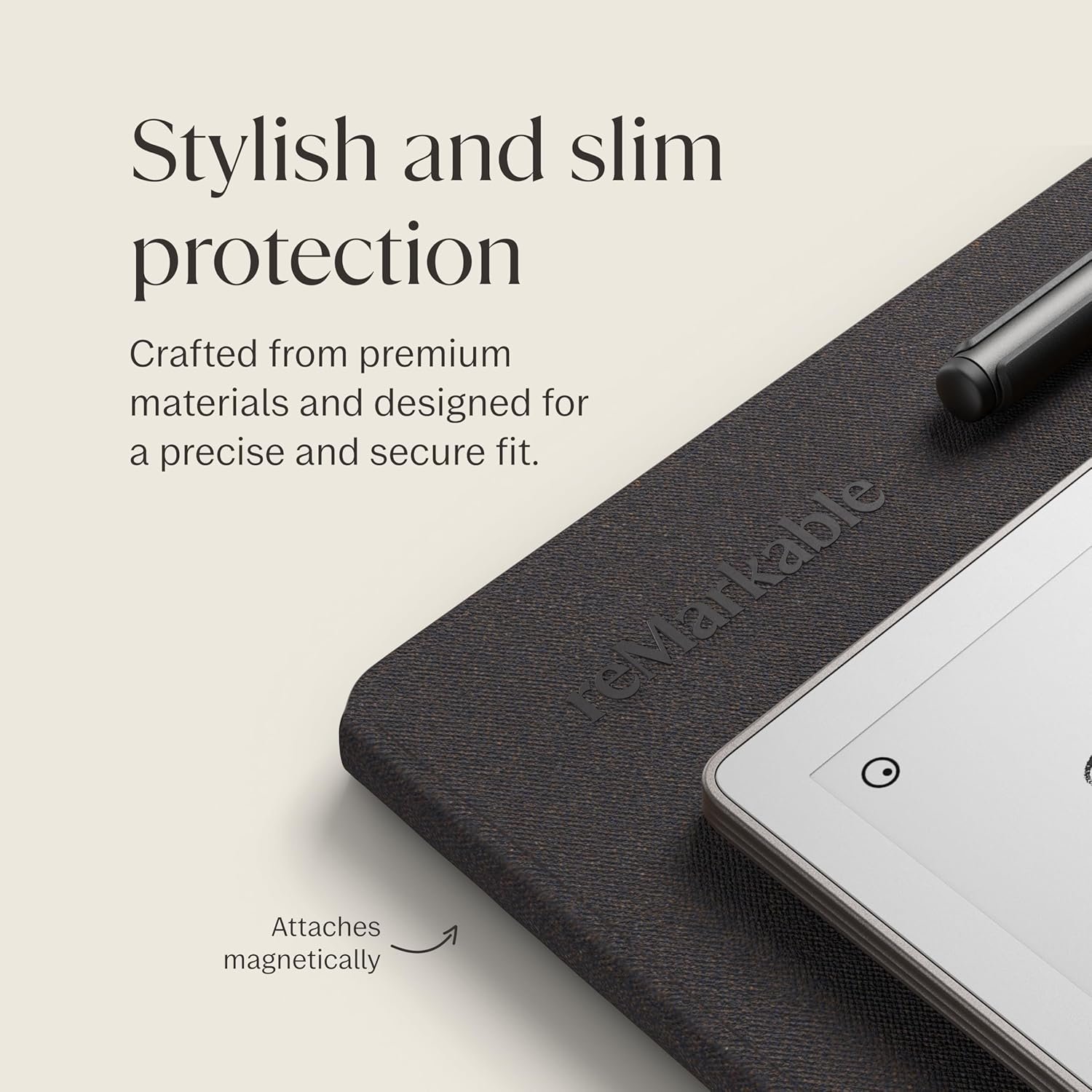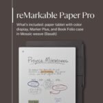 WHAT’S IN THE BOX – You’ll find reMarkable Paper Pro, a digital notebook for unprecedented paper-like writing with 11.8” Canvas Color display; Marker Plus, the reMarkable pen with built-in eraser; 6 spare Marker tips; Book Folio, a stylish protective cover in premium Mosaic weave; and USB-C cable.