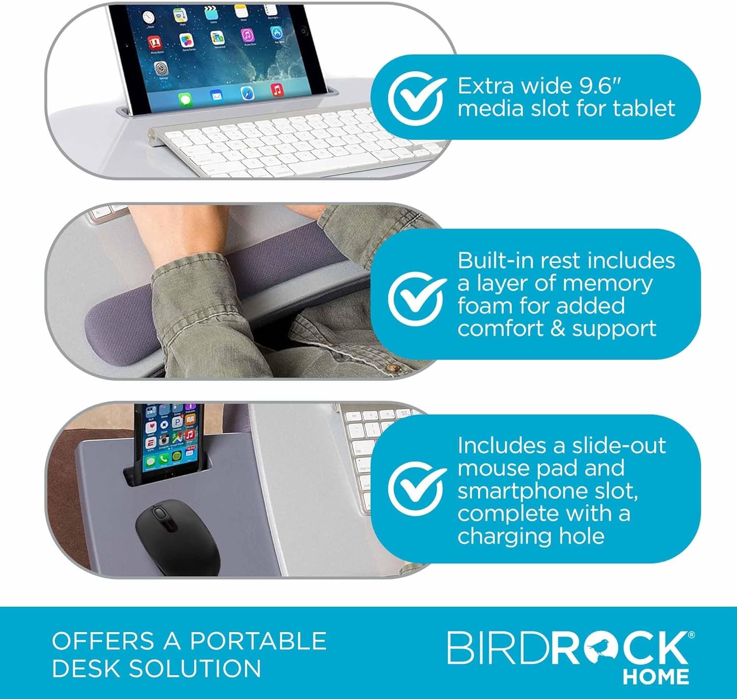 COMFORTABLE DESIGN: Designed for long hours of use, this lap desk features a memory foam cushion that provides comfort and support. The built-in wrist rest reduces strain, and the handle makes it easy to carry, enhancing your work-from-home experience.