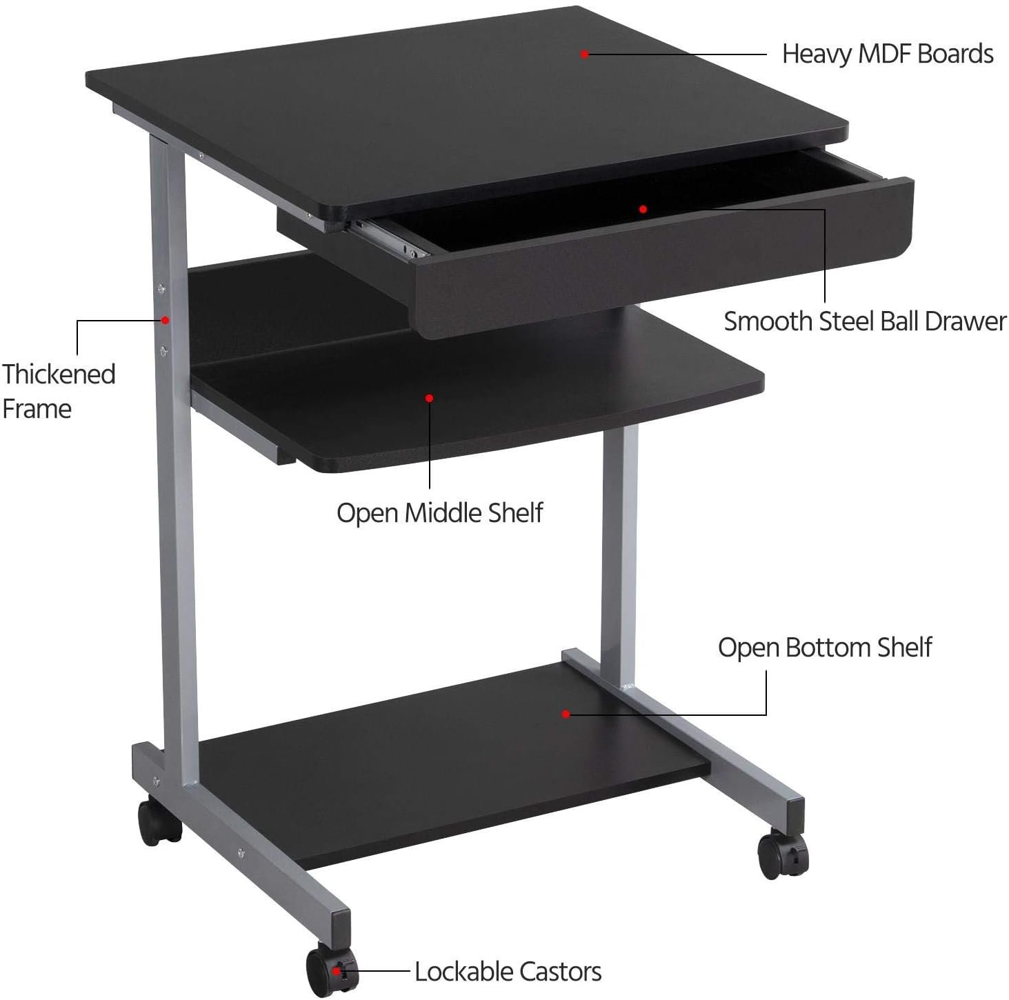 Versatility: This versatile desk-style cart is an excellent choice for a wide range of settings, including classrooms, homes, offices, art and music studios, libraries, as well as dentists’ and optometrists’ offices.