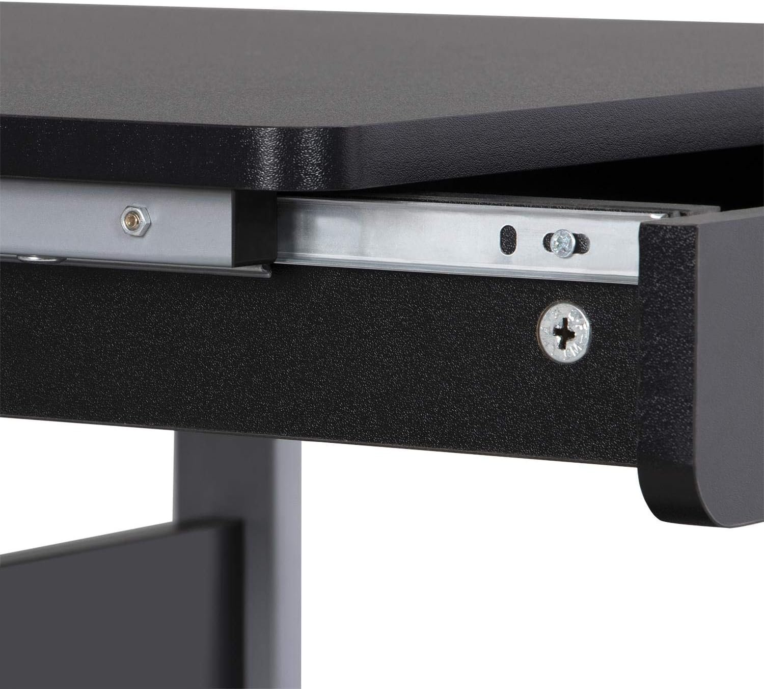 Compact Storage: This small laptop table comes with a clear tabletop, smooth drawer and substantial shelves in the middle and at the bottom. Smooth metal runners and safety stops give a smooth drawer for your writing supplies. Back plate protects books from falling off the middle shelf. Open bottom shelf allows an easy access to your printer.