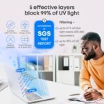 Eye Comfort: Blue light screen protector reduces eye strain by filtering up to 61% of blue light and 99% of UV light. This blue light screen protector doesn’t have an Anti-Glare function