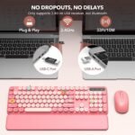 Wireless Keyboard and Mouse Combo, Retro Keyboard with Round Keycaps, Full-Size …